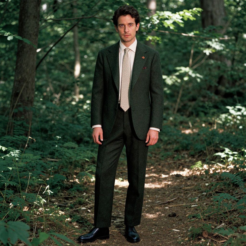 Confident Man in Forest Suit