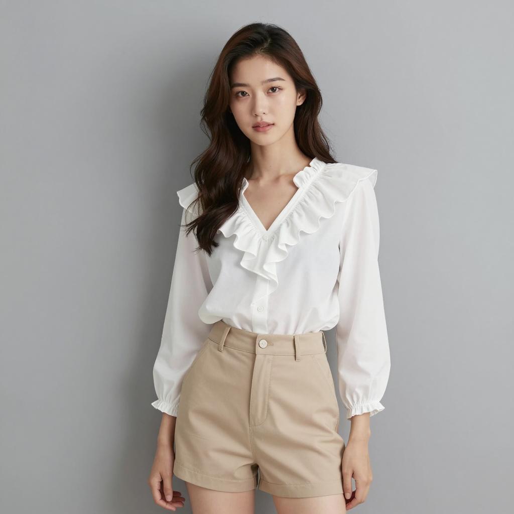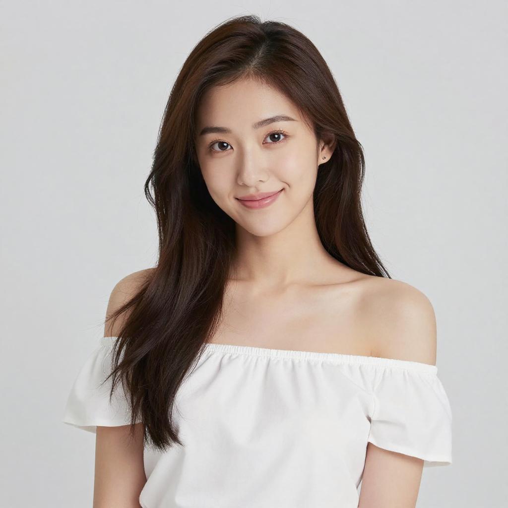 Portrait of a young Asian woman with long flowing hair wearing a cream-colored cozy knit sweater. She has a serene and inviting expression, perfect for lifestyle or beauty content, set against a soft neutral background.