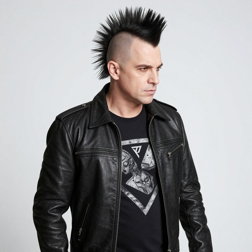 Punk Rock Costume Man, man with a spiked mohawk and leather jacket