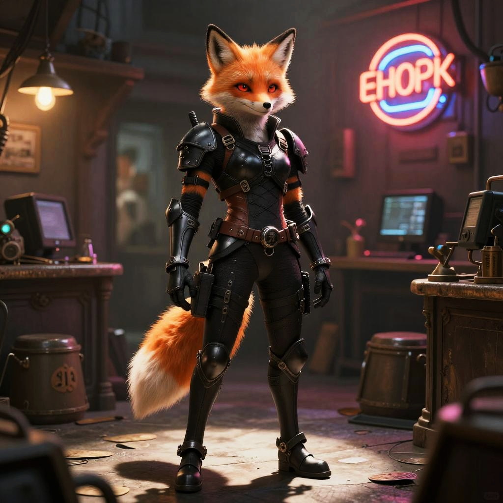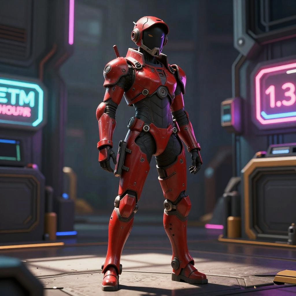 Temmie in Red Tactical Cyberpunk Armor