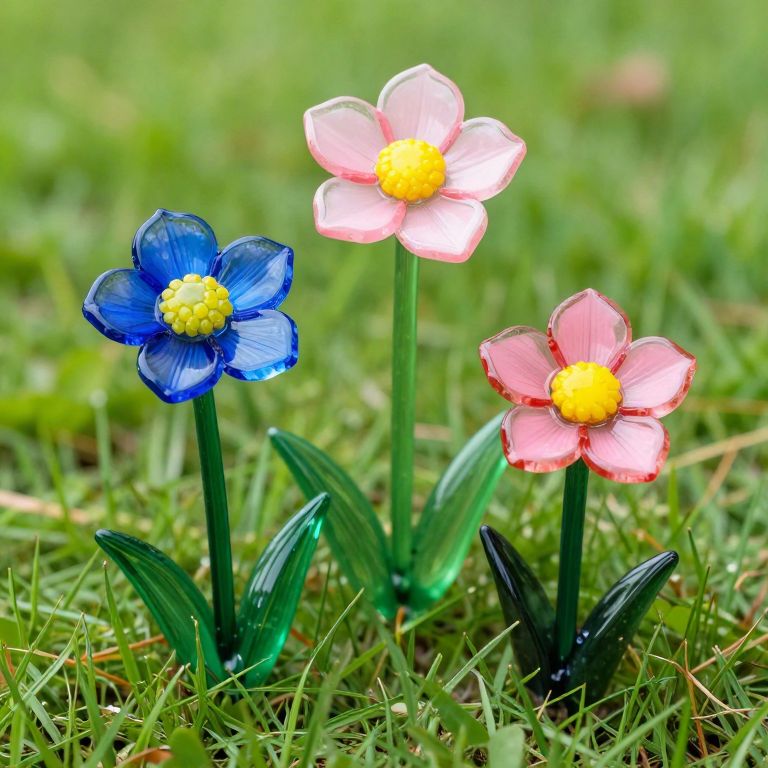 Colorful Recycled Glass Flowers in Lawn