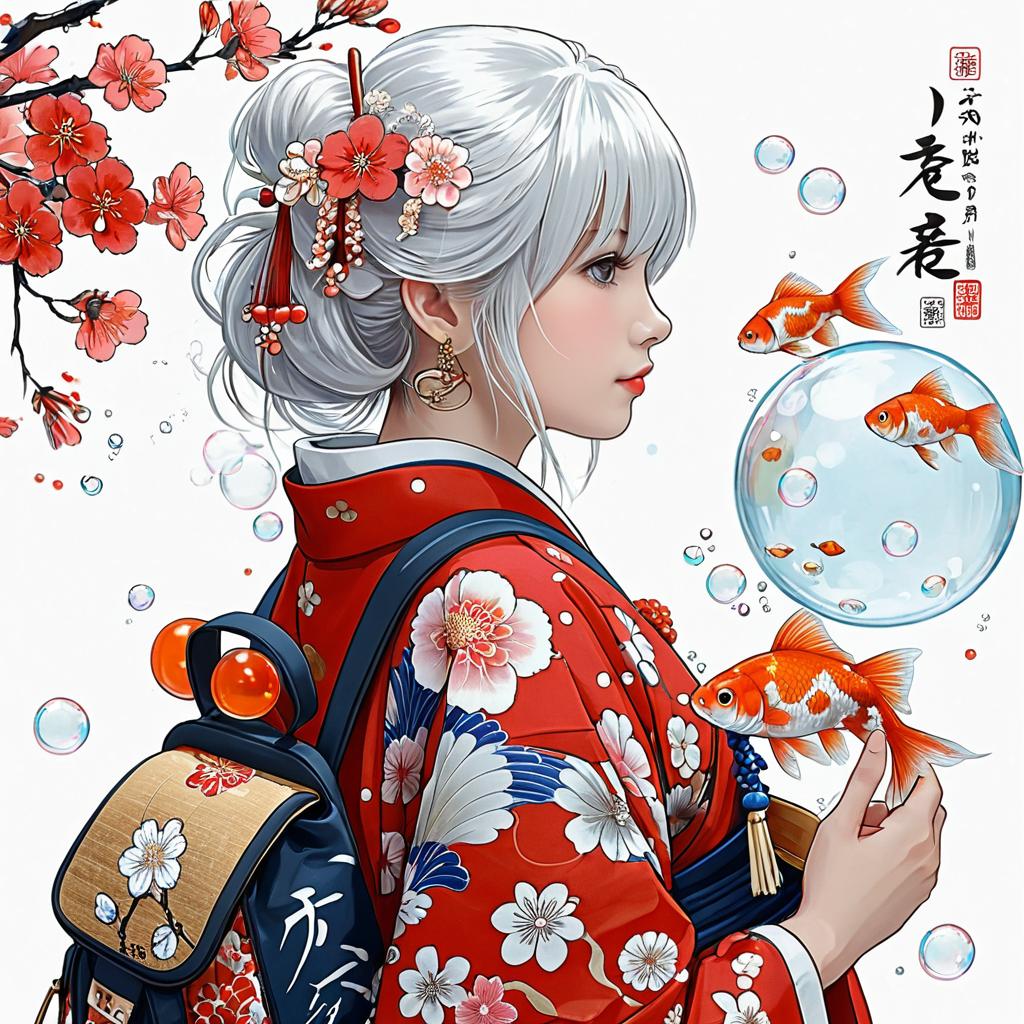 Serene Girl in Floral Kimono
