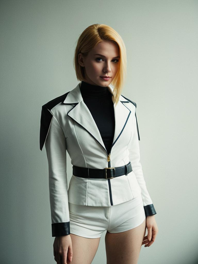 Sexy cosplay woman character wearing Zorin Blitz costume. Realistic photo. Jane Doe dressed as Zorin Blitz --sref 1400