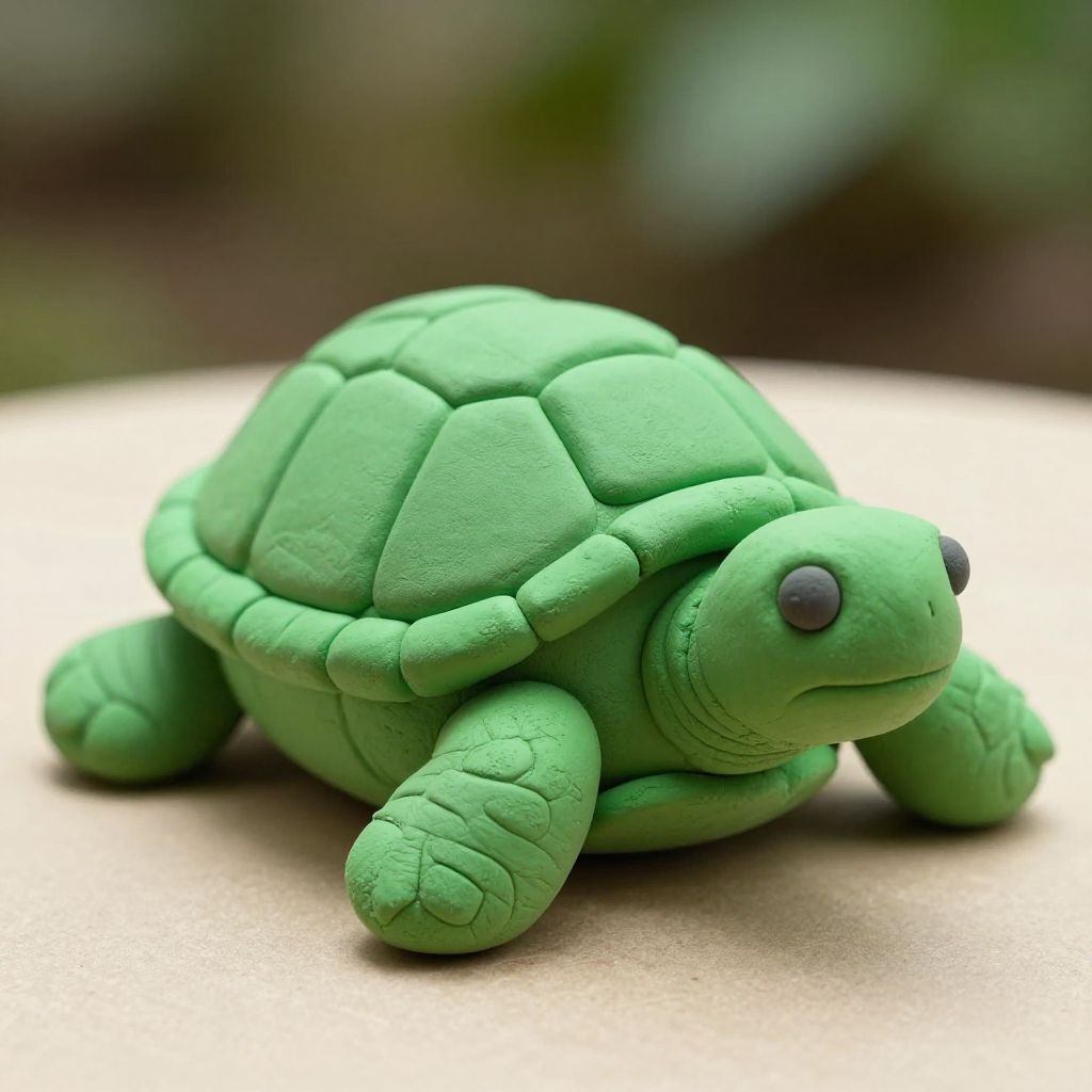 Detailed Green Clay Turtle Sculpture