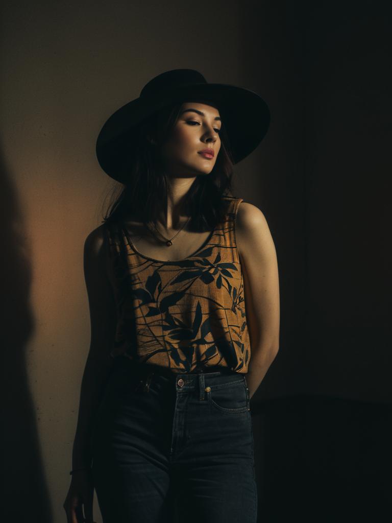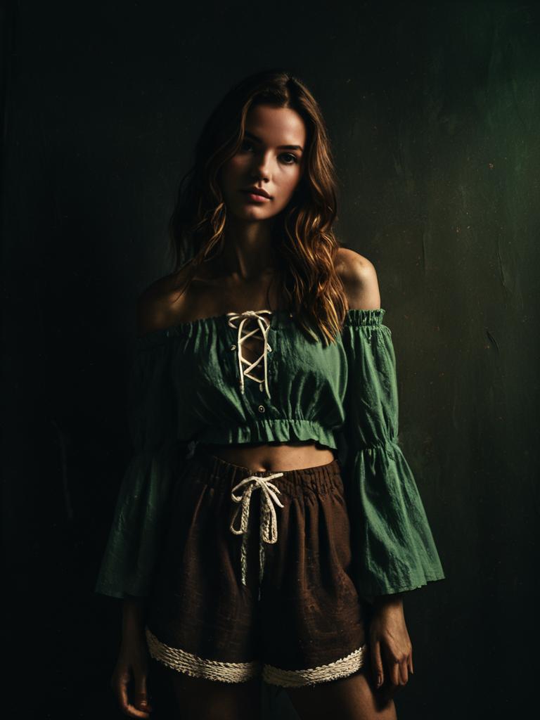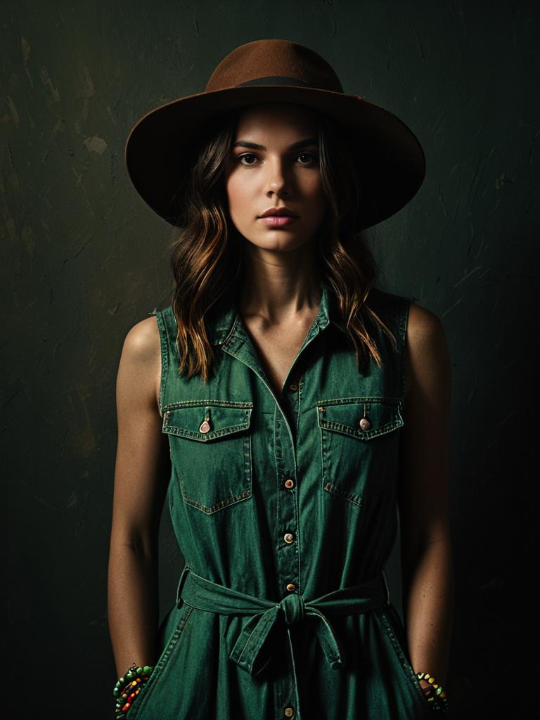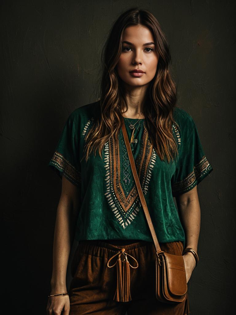 Bohemian Chic Woman in Patterned Blouse and Pleated Mini Skirt