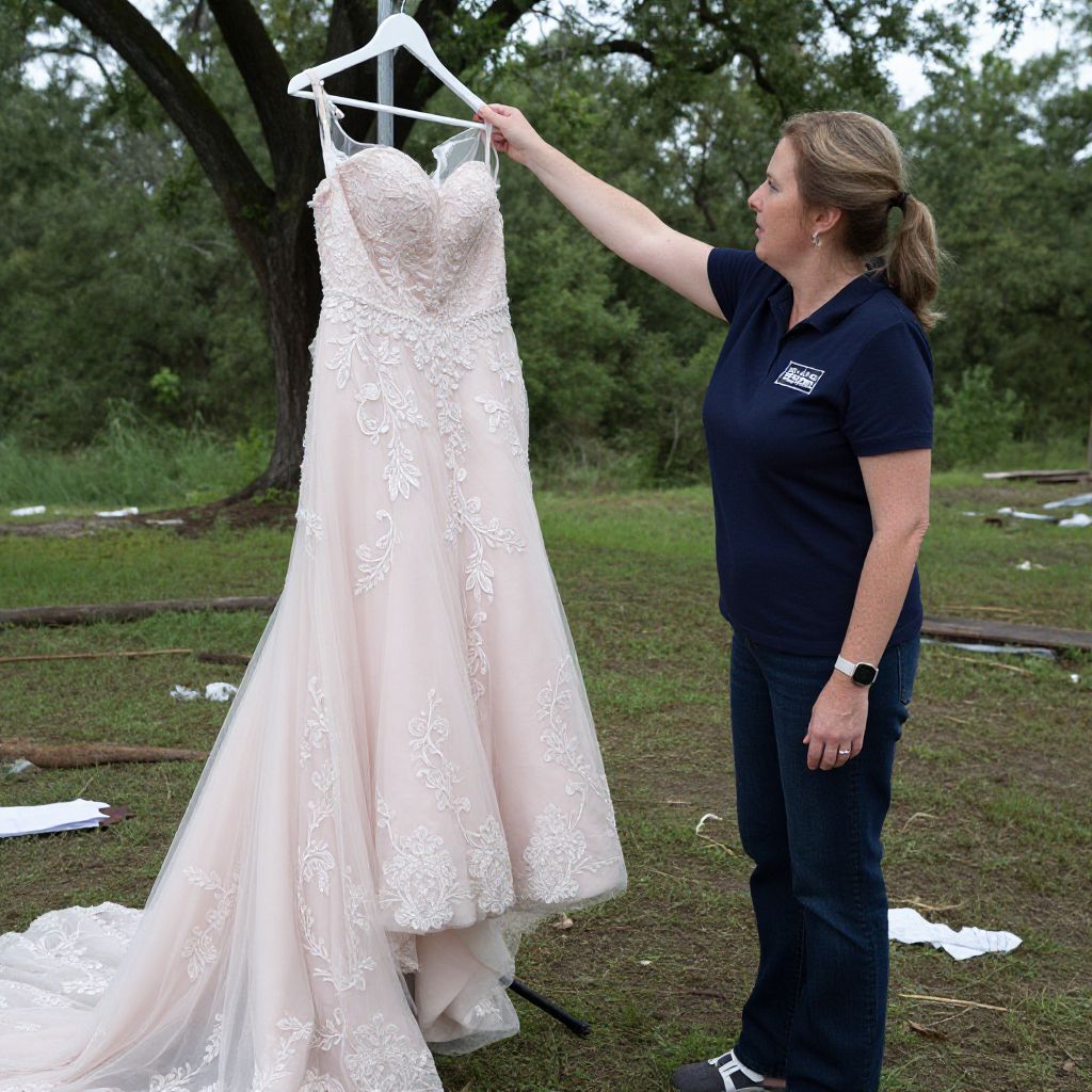 PHOTO: Texas woman, Barbara Haynes, is searching for the owner of this pink wedding gown she found after a tornado hit.