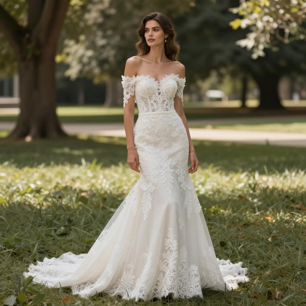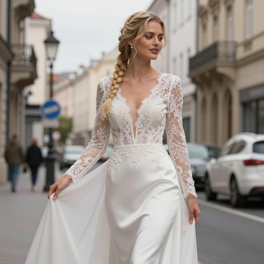 Elegant Bride in Lace Wedding Dress