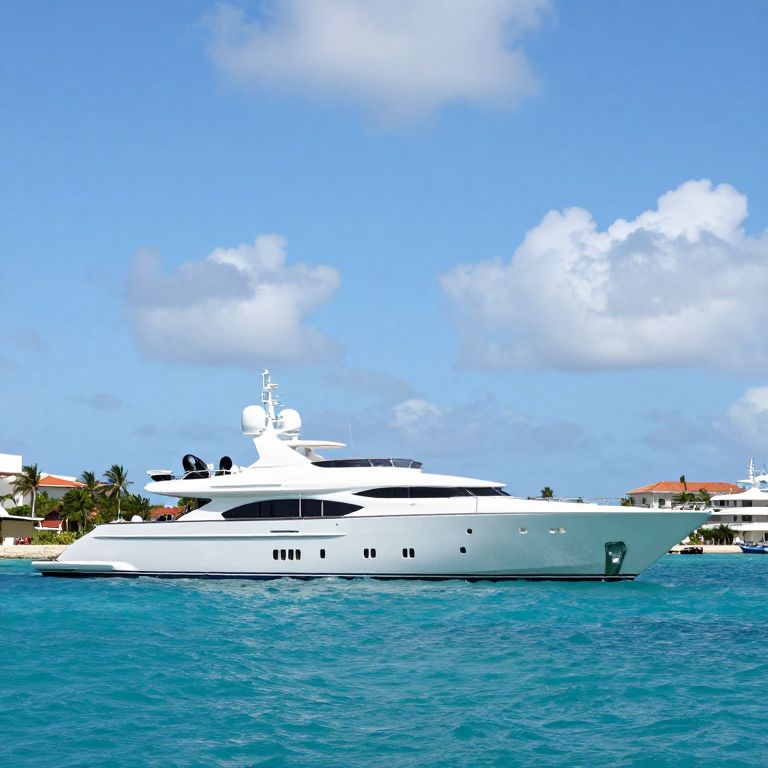 Superyachts in Simpson Bay on St Maarten, with blue sky and a few clouds behind