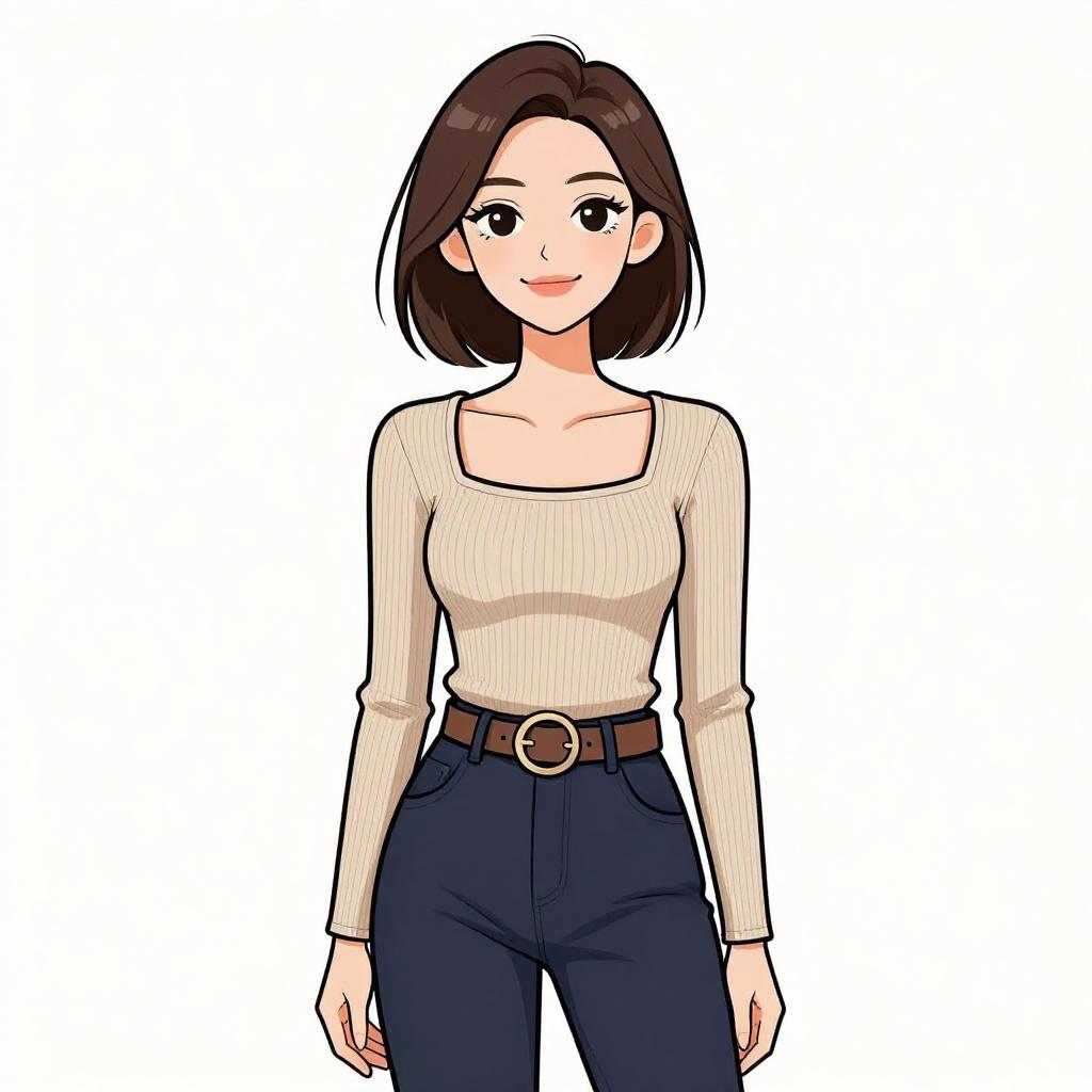 Smiling Woman in Casual Chic Outfit