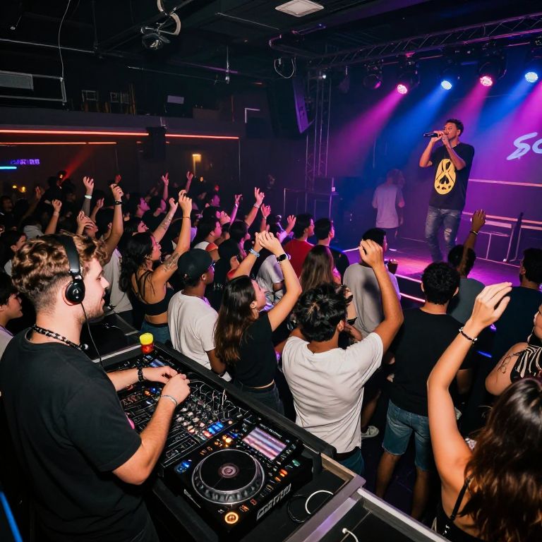 Vibrant Nightclub Scene with DJ and Singer