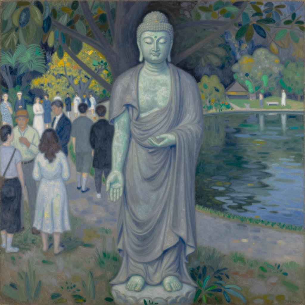 Buddha by the Lake in Seurat Style