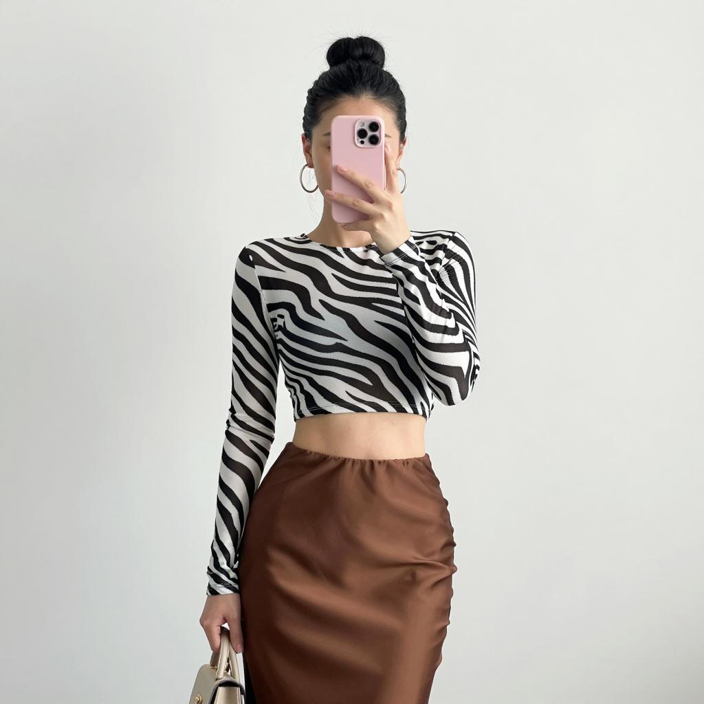 Woman with long black hair sitting on white carpet against white wall. Wearing tight, light brown turtleneck and wide-legged pants. Holding black phone in front of face, taking selfie. Holding brown and black patterned clutch in left hand. Gold chain necklace around neck. Bare feet visible. Carpet ure is soft and white. Background is plain white wall.