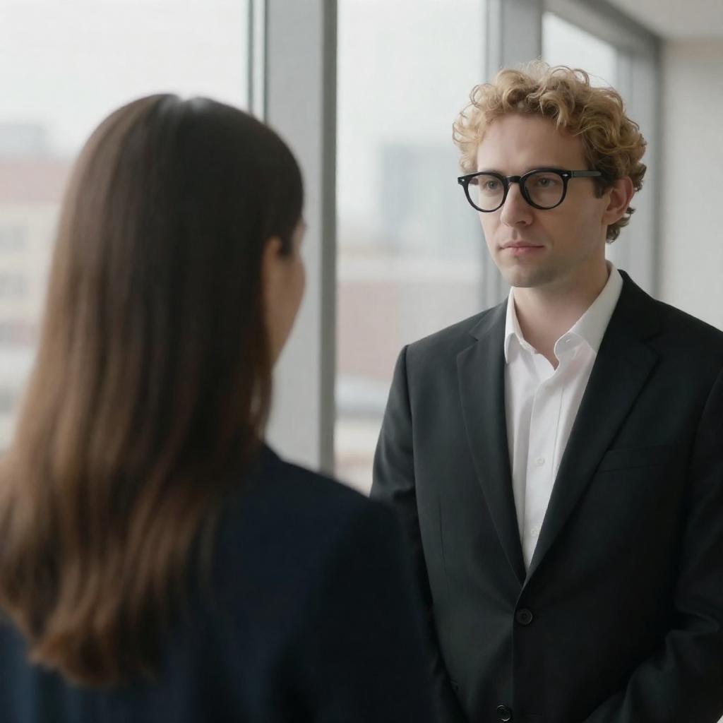 Photograph of a crowded airplane aisle. Central male figure in dark suit, white shirt, speaking on phone, gesturing with right hand. Passengers with neutral to intense expressions in blue-gray seats. Overhead bins and cabin lights in background.