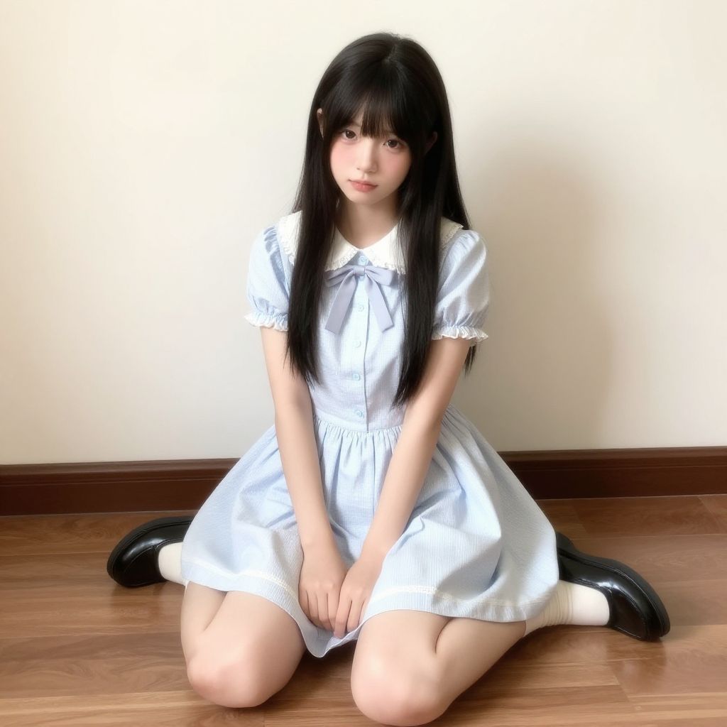 1girl, solo, hertasr, dress, dollgirl, sitting