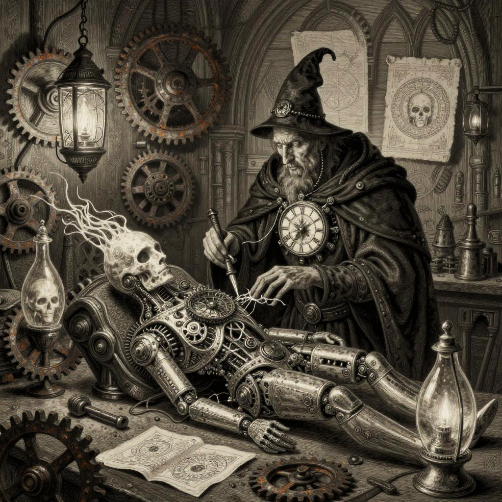 Stained-Glass Golem in Ruined Cathedral