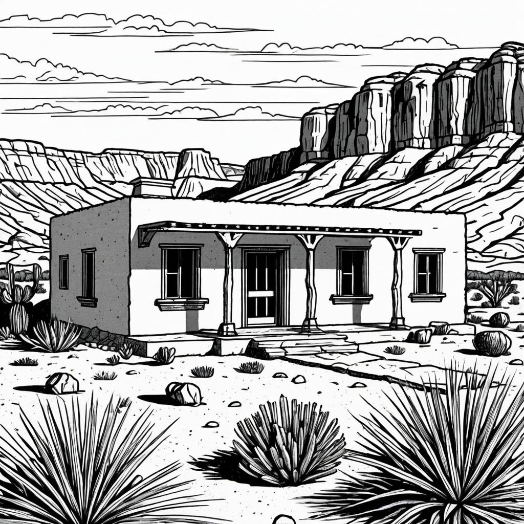 Desert Adobe House Coloring Page
