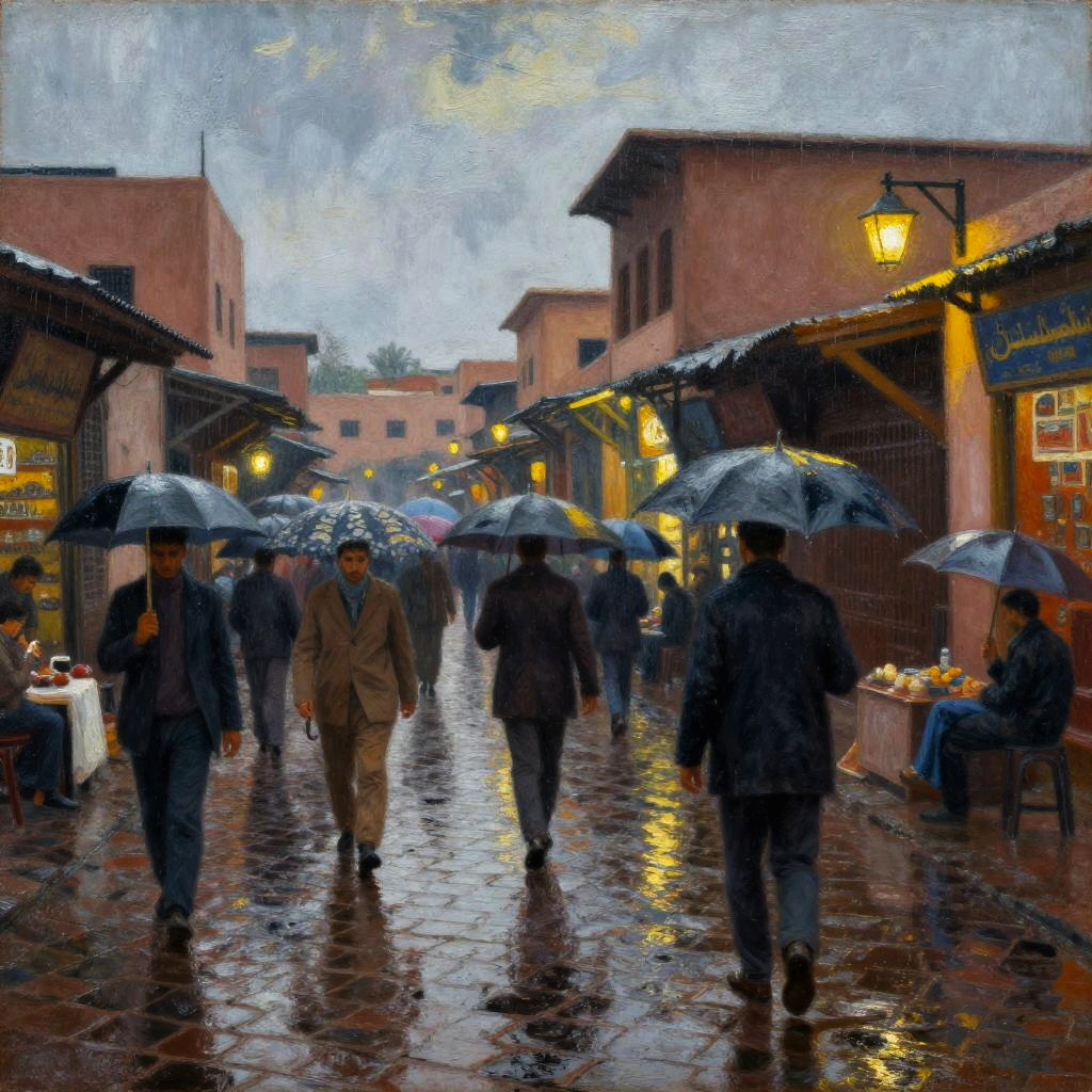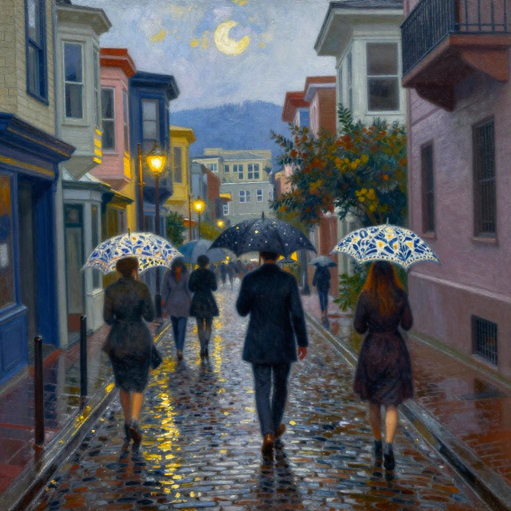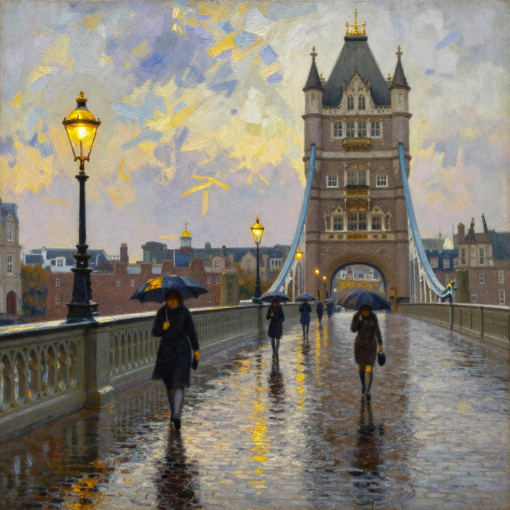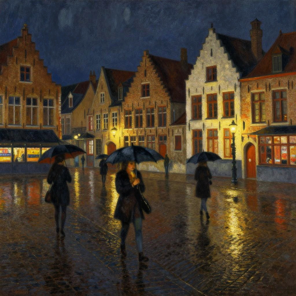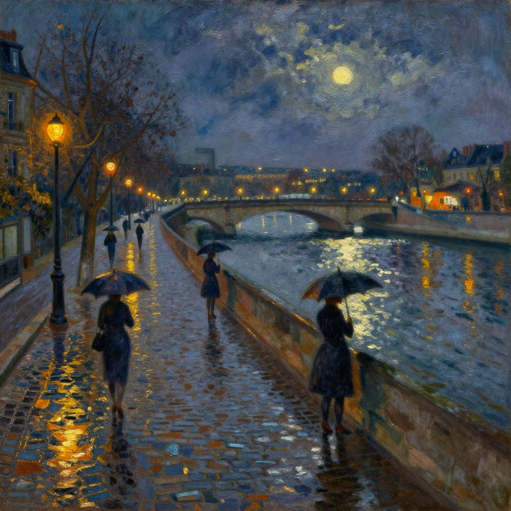 Impressionist Beach Scene with Colorful Umbrellas