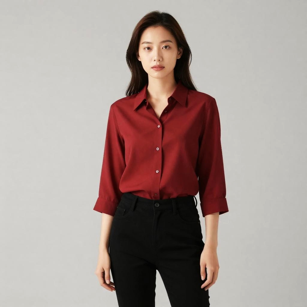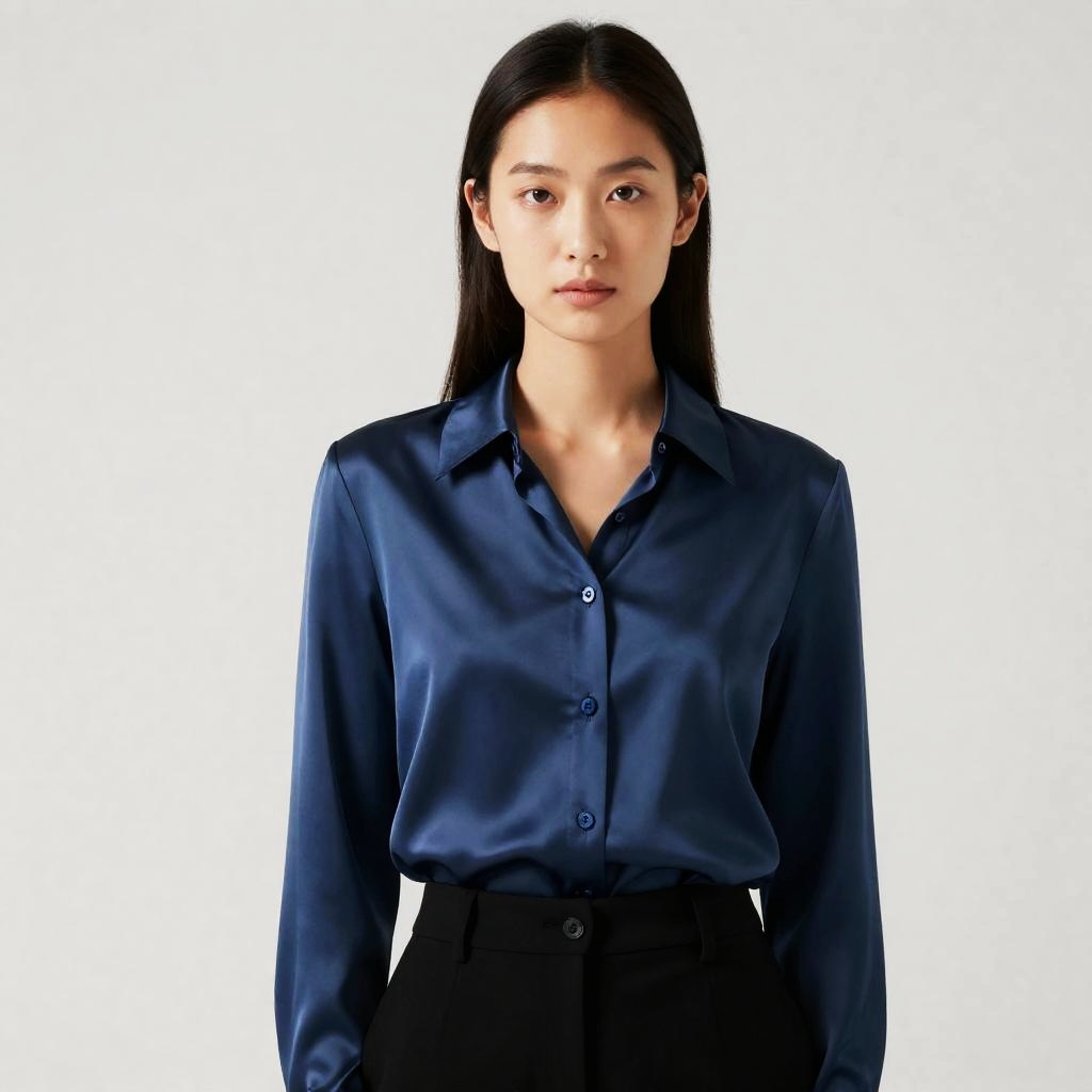 Woman in Silk Button Shirt Pose