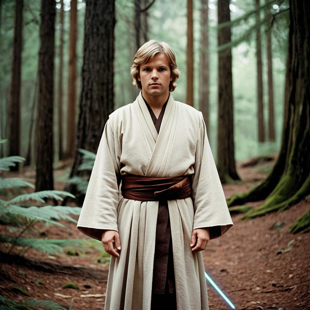 Man in Jedi Robes Standing in Forest