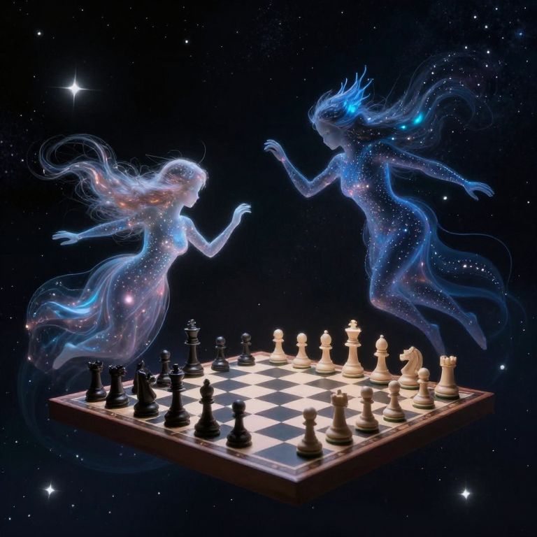 Colossal Floating Chessboard Over Forest