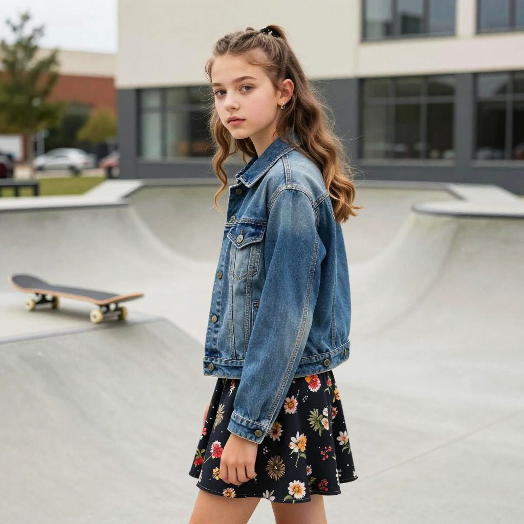 Side Part hairstyle on child boy, wearing bright t-shirt and shorts, in city park playground, captured in fashion editorial style with clear late morning sunlight.