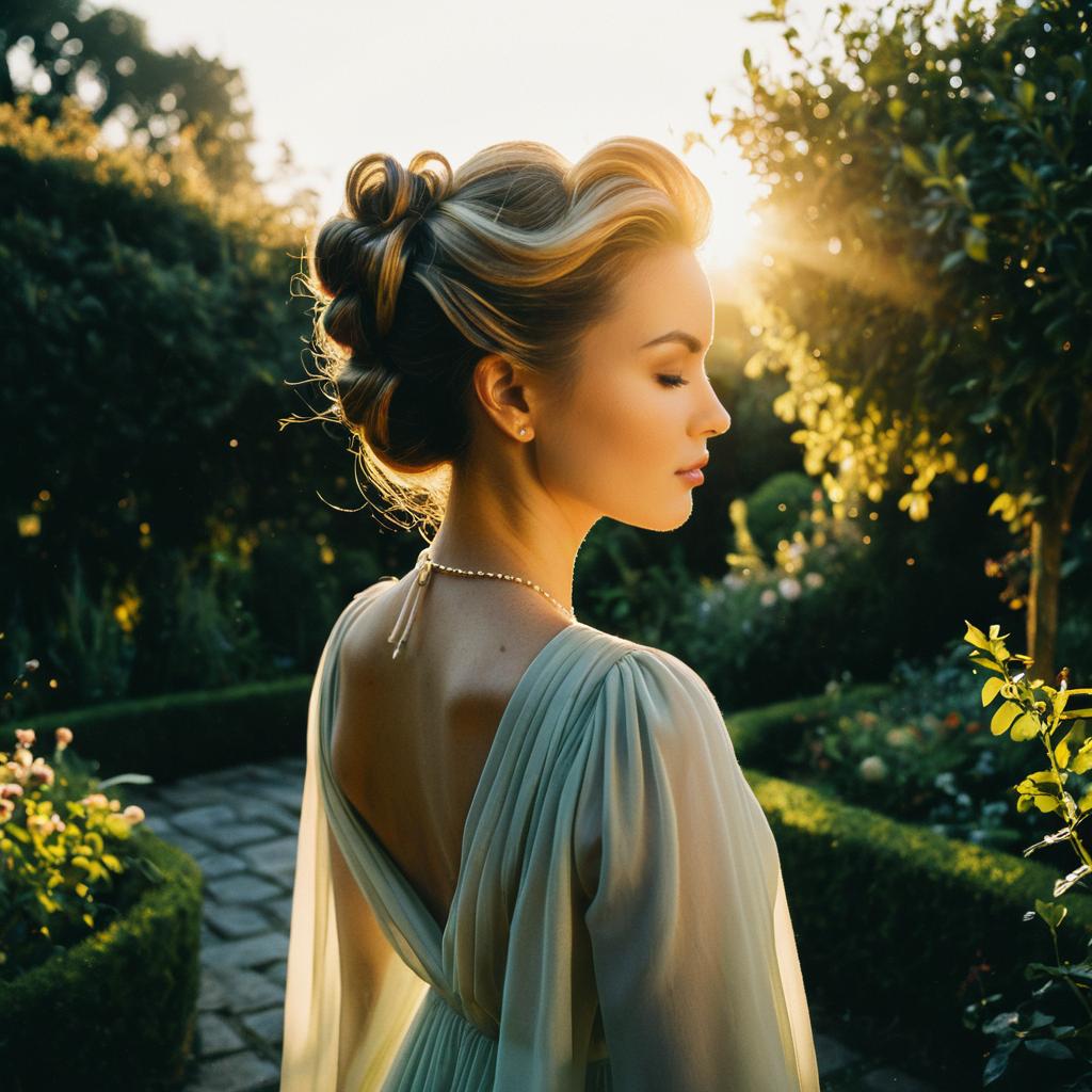 Elegant Woman with Romantic Updo in Velvet Gown