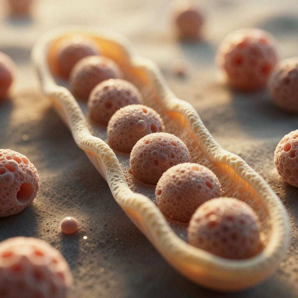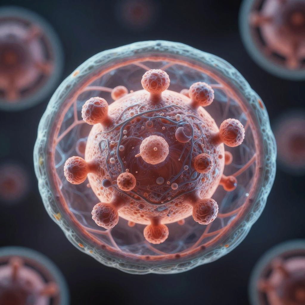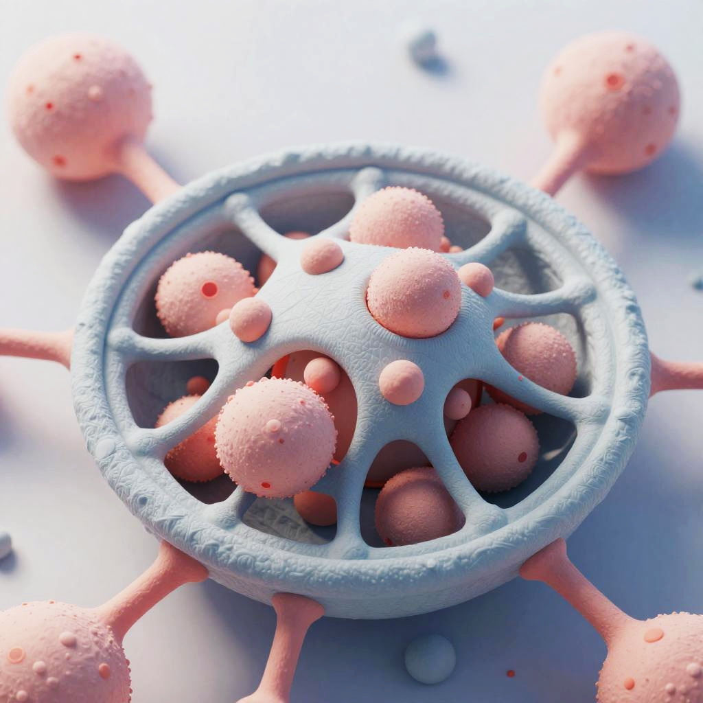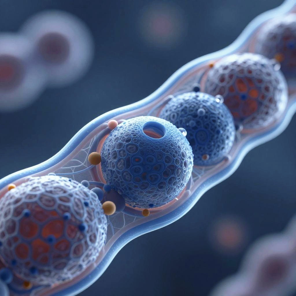 The endoplasmic reticulum in a eukaryotic cell, hyper-detailed and photorealistic, Octane Render, warm volumetric lighting