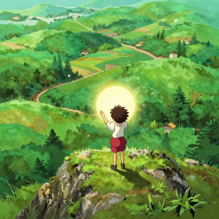 Magical Girl a man hiking with his family in the distance out of focus, a brown garden snail crawls towards the man,