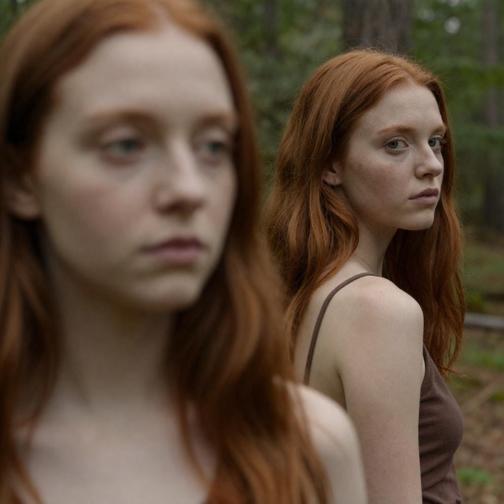Cinematic film still, close up, photo of redheaded girl near grasses, fictional landscapes, (intense sunlight:1.4), realist detail, brooding mood, ue5, detailed character expressions, light amber and red, amazing quality, wallpaper, analog film grain
