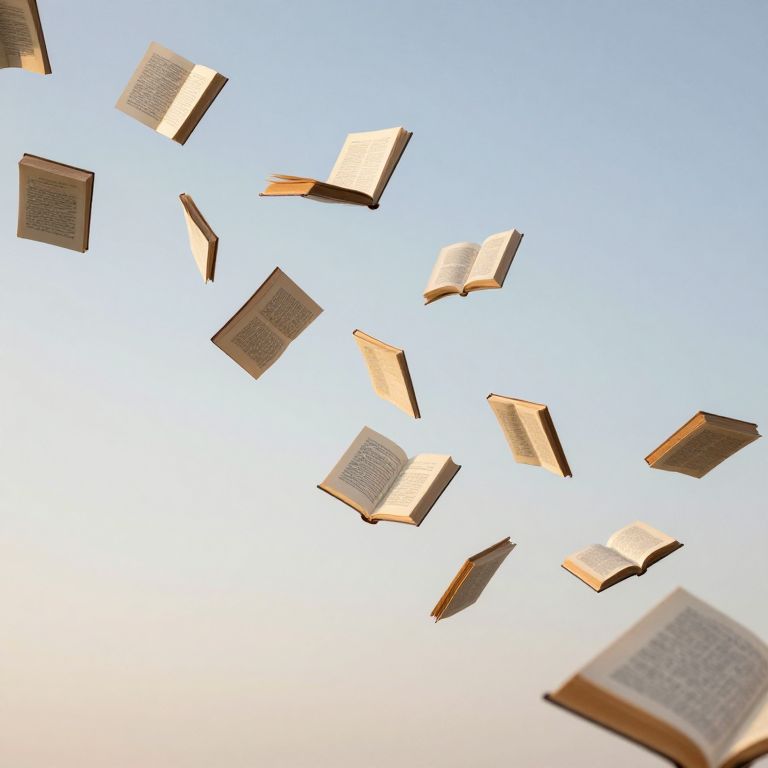 An ethereal symphony of knowledge takes flight, as books transform into living narratives, their pages whispering stories of infinite possibility against a serene sky, evoking a sense of wonder and boundless imagination.