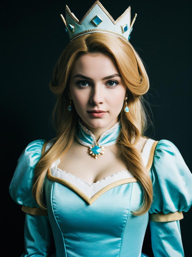 Woman in Princess Rosalina Costume, detailed studio cosplay portrait