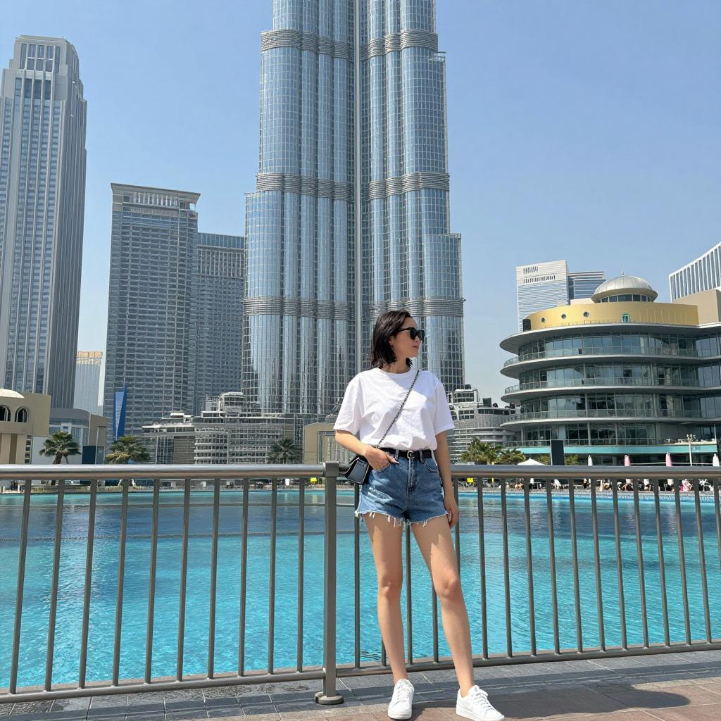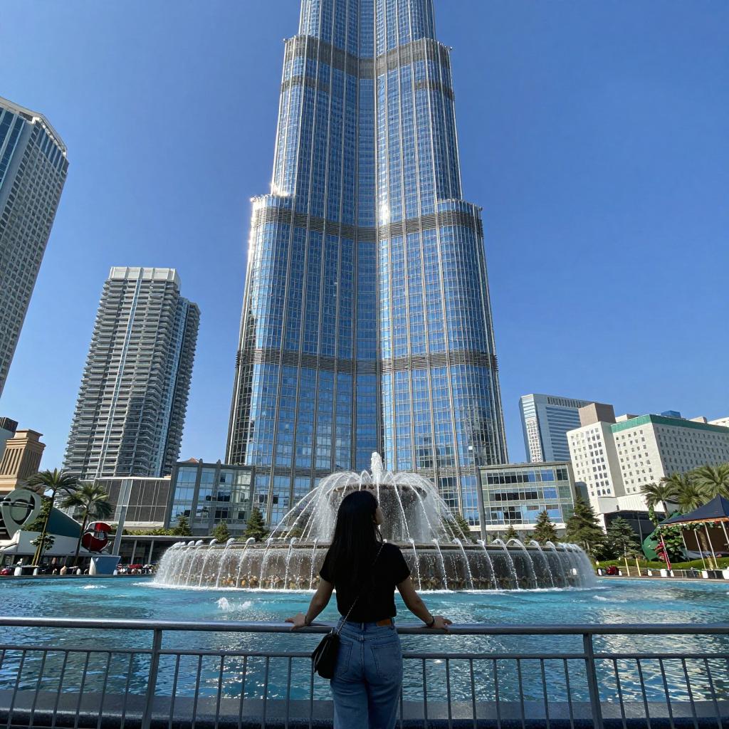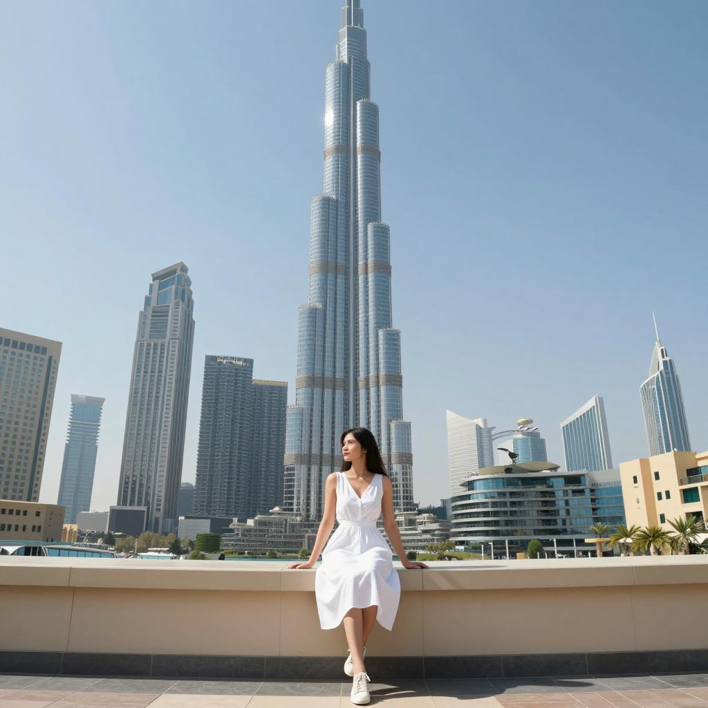 Woman Walking Near Burj Khalifa