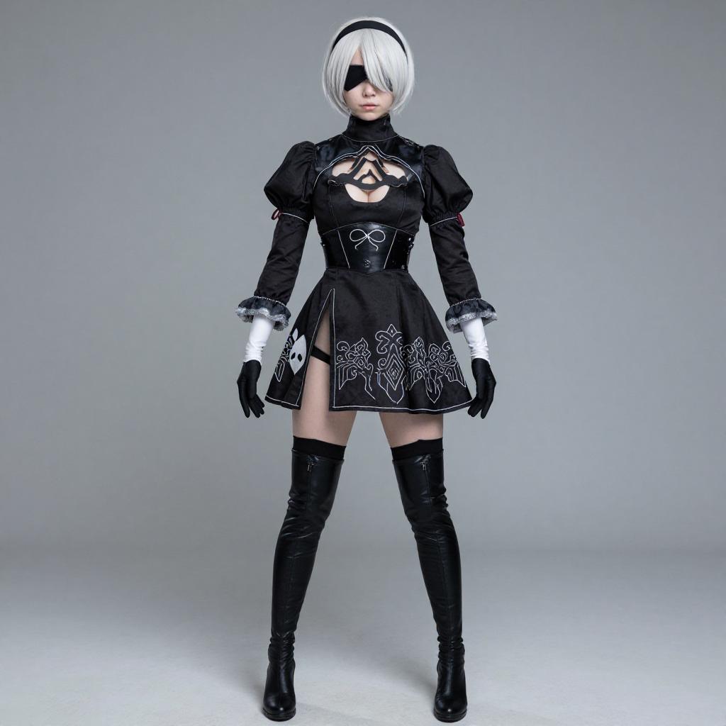 Cosplay realistic photo of 2b (nier:automata). Costume clothes