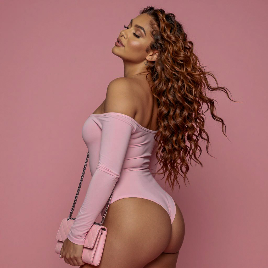 Stylish Woman in Pink Bodysuit Portrait