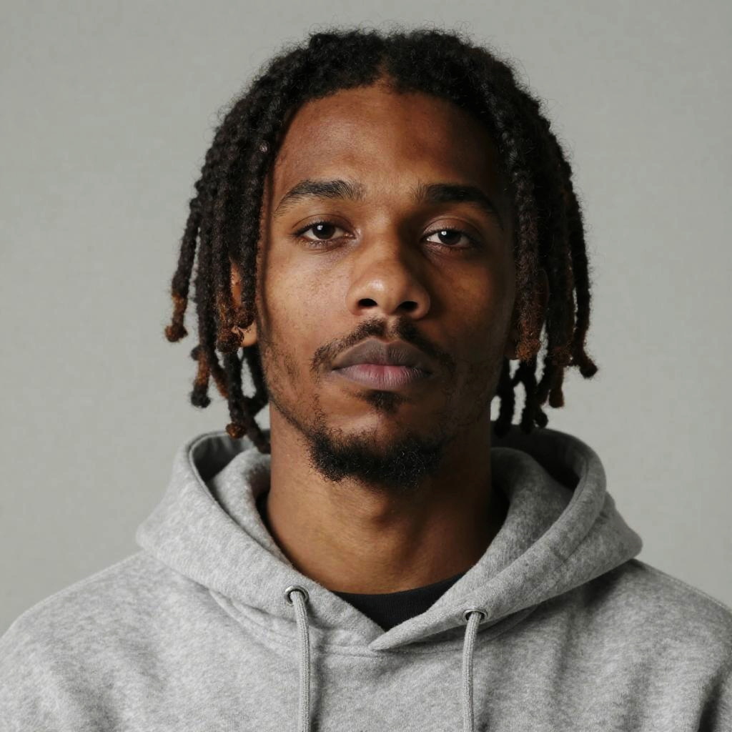 Weed Boy, a close up of a man with dreadlocks and a hoodie