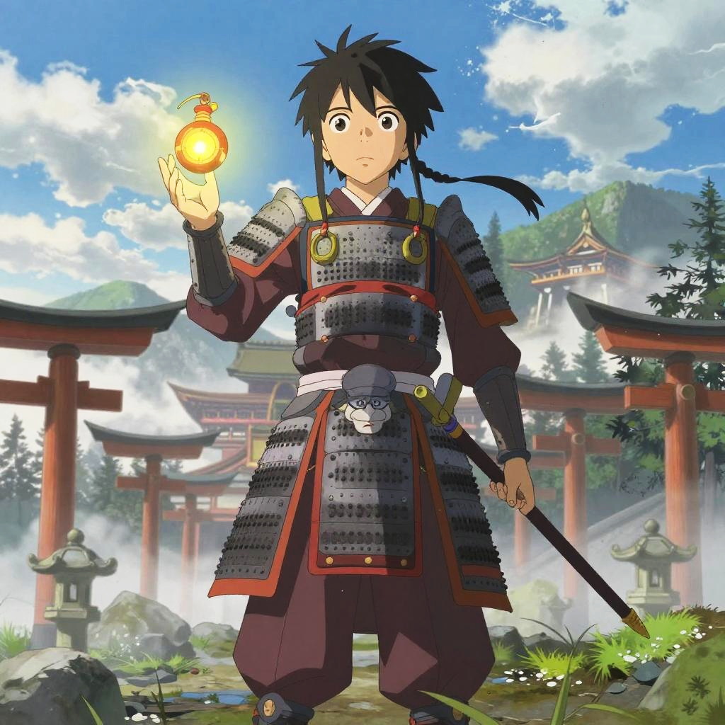 Ashitaka, mononoke hime, 1boy, brown eyes, short hair, brown hair, black hair, by artist hyudora, animagine