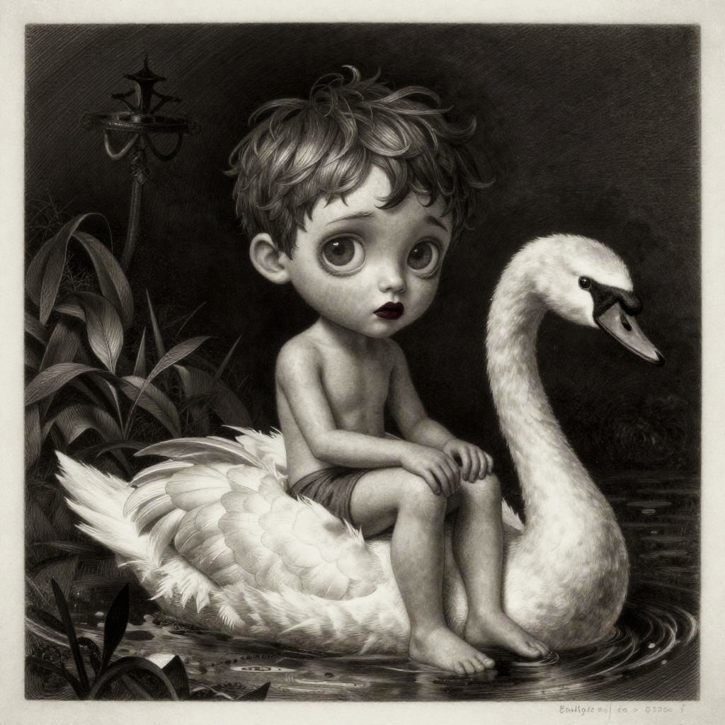 Fine art etching portrait of a stylized thoughtful boy with big sad topaz eyes, plum lips sitting on a panther, depicted style combination of Bill Carman, Nicoletta Ceccoli, Amy Earles and Abigail Larson, Grimdark, full-length portrait, extremely detailed, beautiful, Best quality, high definition