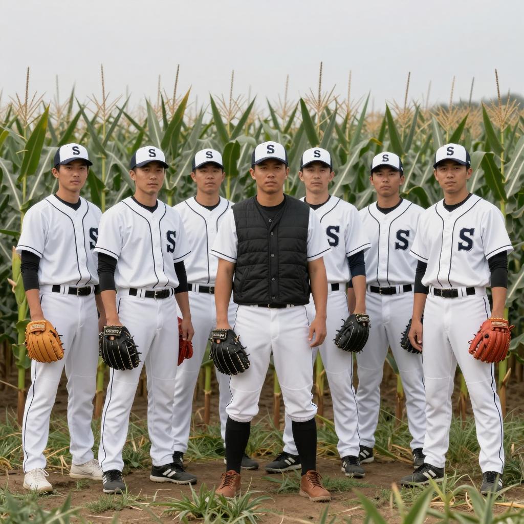 Baseball Team in Cornfield Setting