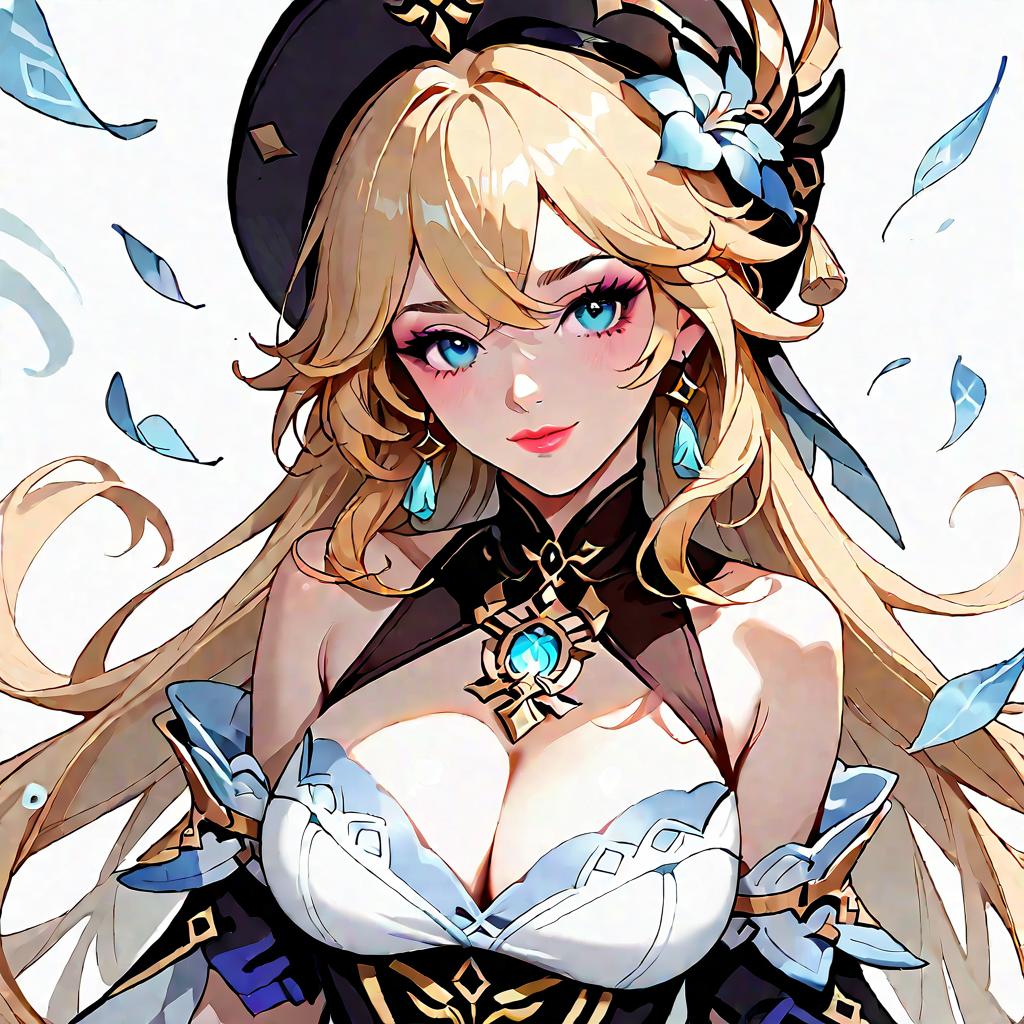 Score_9, score_8_up, score_7_up, source_anime 1girl, solo, 1girl, breasts, looking at viewer, short hair, bangs, large breasts, gloves, long sleeves, dress, cleavage, bare shoulders, jewelry, green eyes, blue hair, jacket, cowboy shot, earrings, mole, fur trim, clothing cutout, blue dress, bob cut, white jacket, tassel, mole on breast, vision (genshin impact), fur-trimmed jacket, dice, diagonal bangs