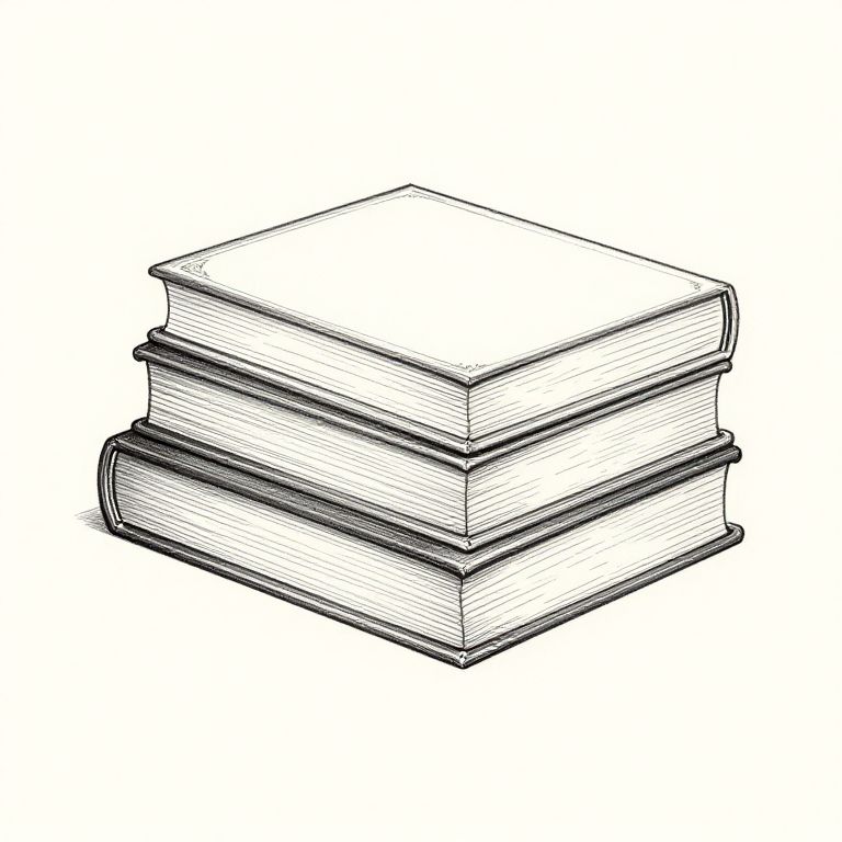 Book line art, detailed sketch of stacked books with clean linear elements, crisp black lines on cream paper texture, classic literary vibe, balanced composition with subtle ornamental flourishes, hand-drawn aesthetic for stationery or print