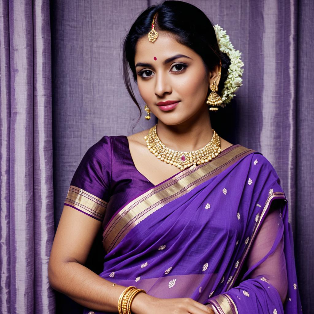 Lavender Saree with Gold Jewelry