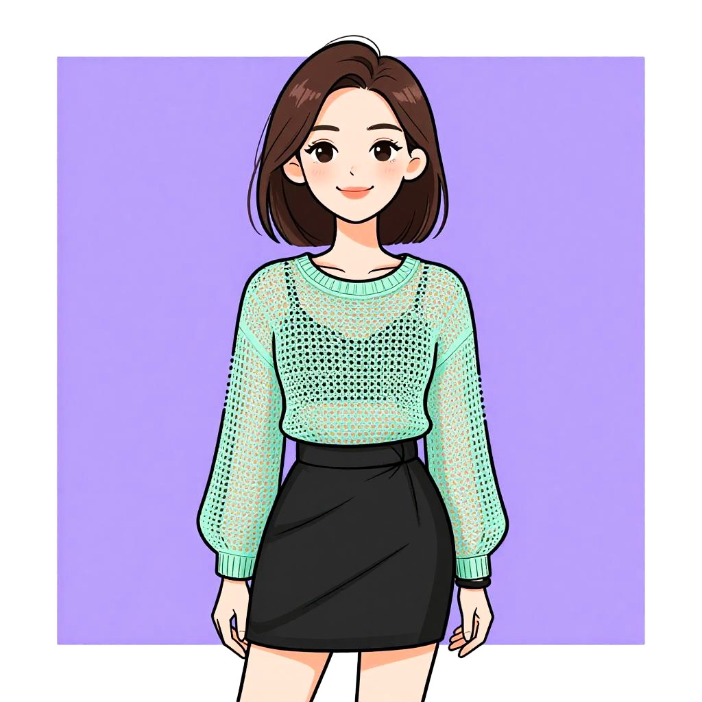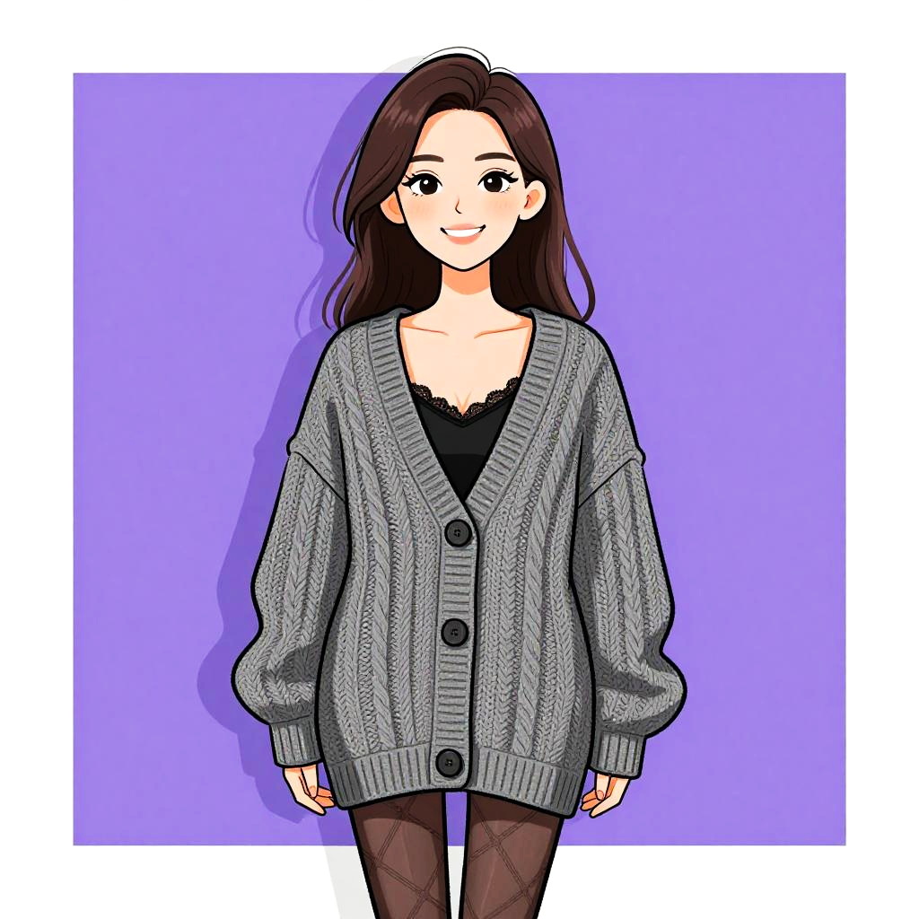 Woman with pretty face and pretty hair. Woman, casual, burgundy cable knit sweater, crew neck, long sleeves, ribbed cuffs and hem, black skinny pants, minimal jewelry with a simple necklace. --sref 1467