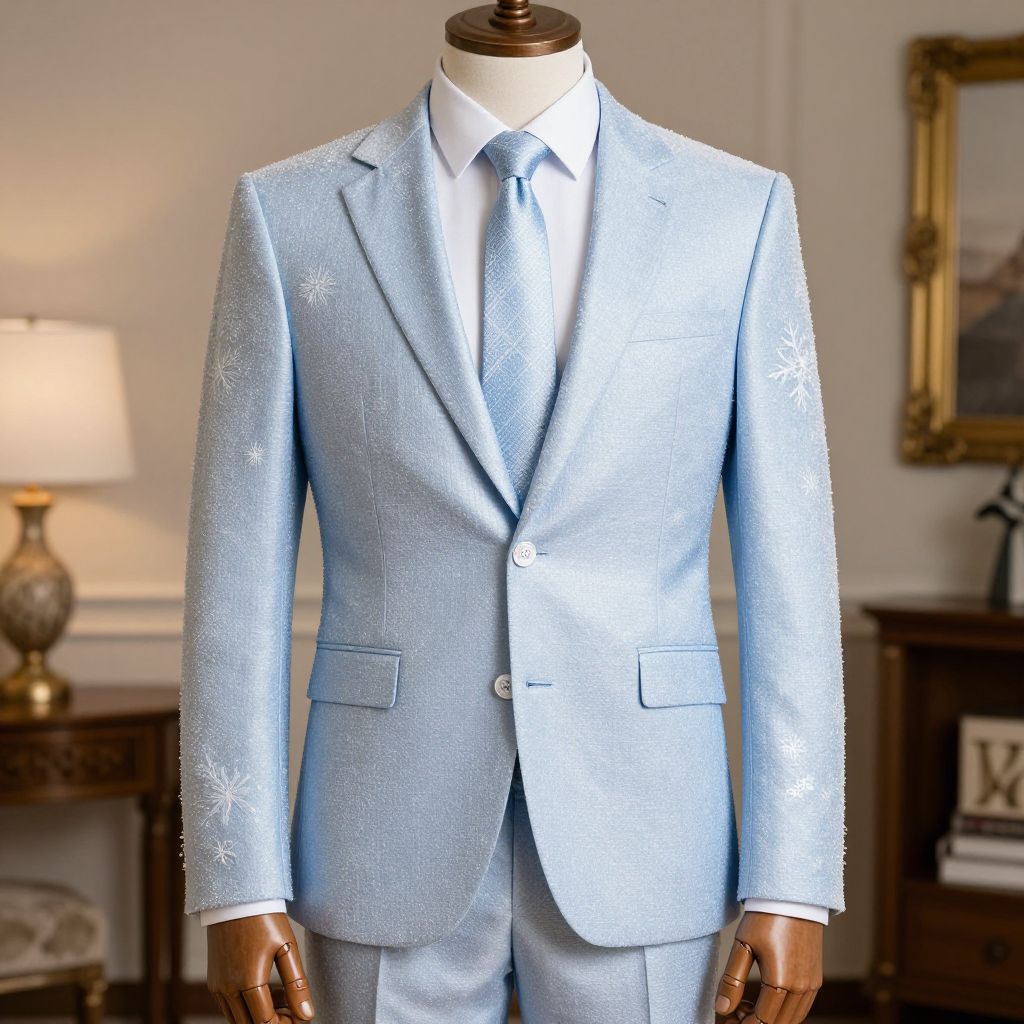 Snowflake Suit Costume, man in a suit and tie standing in a room
