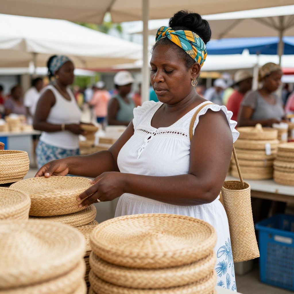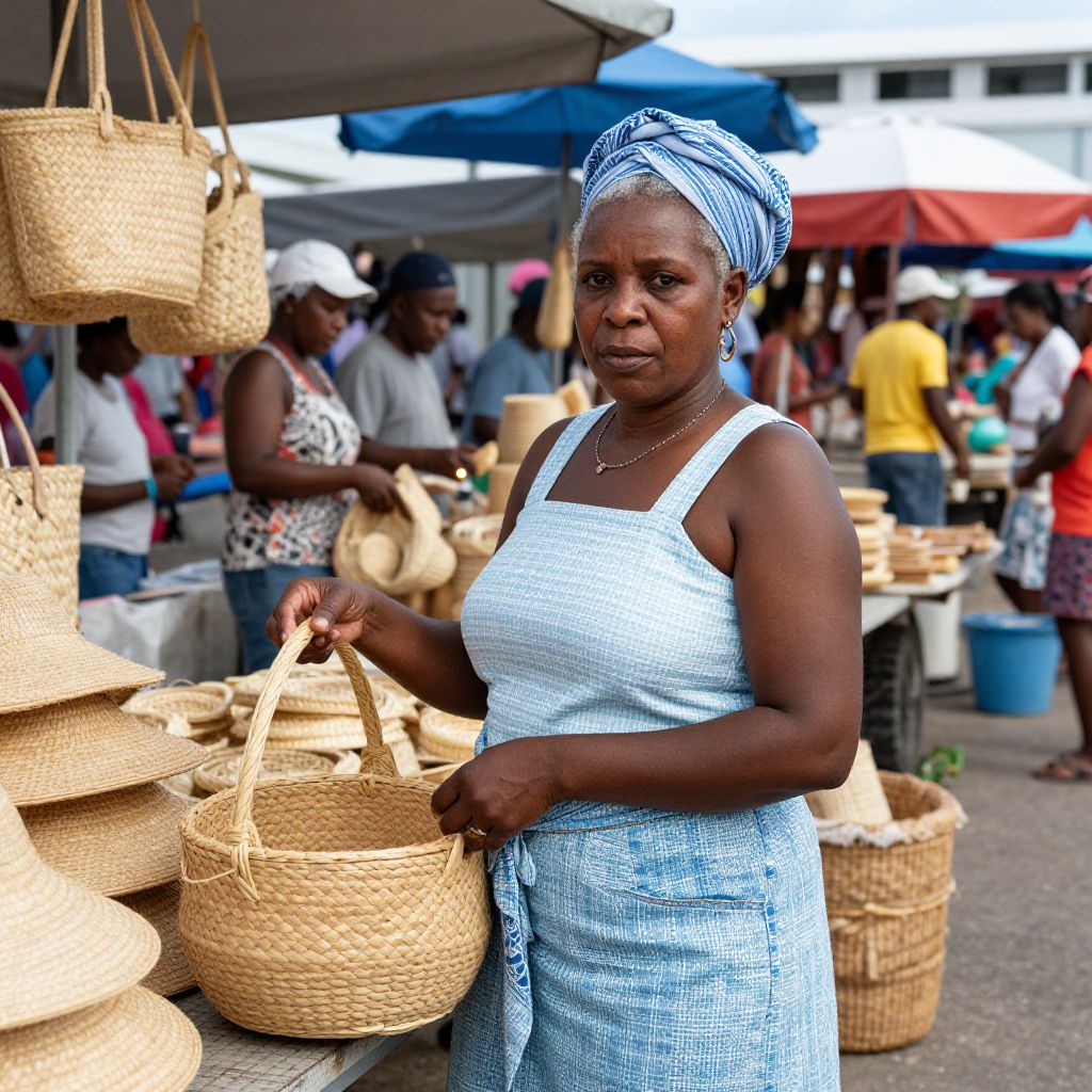 Straw Market / Caribbean Woman, Nassau, Bahamas, Caribbean Islands : Stock Photo