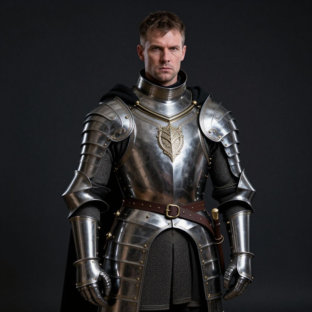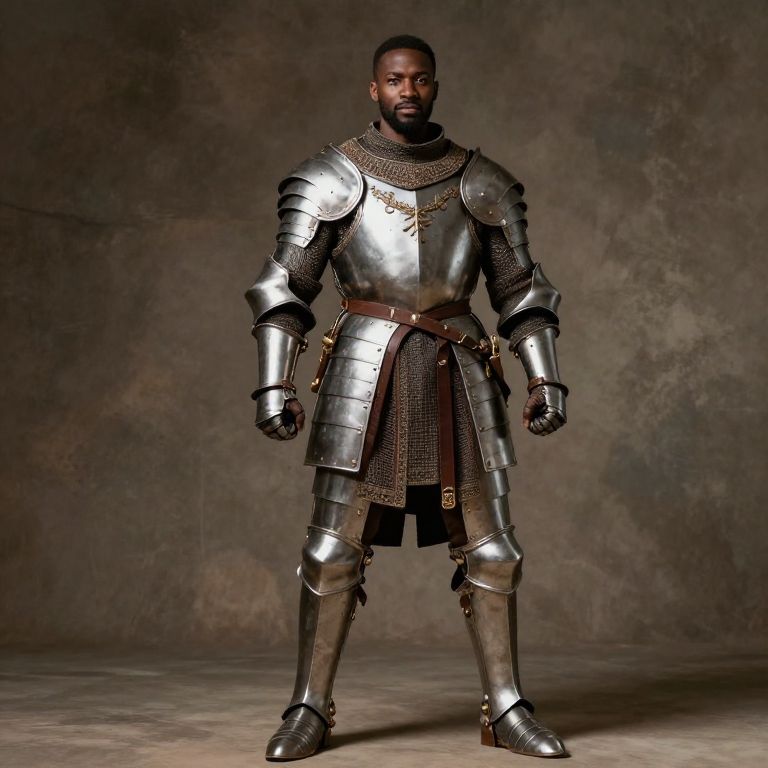 Crop israel adesanya in medieval armor, heroic stance, full body, interesting background, interesting lighting,