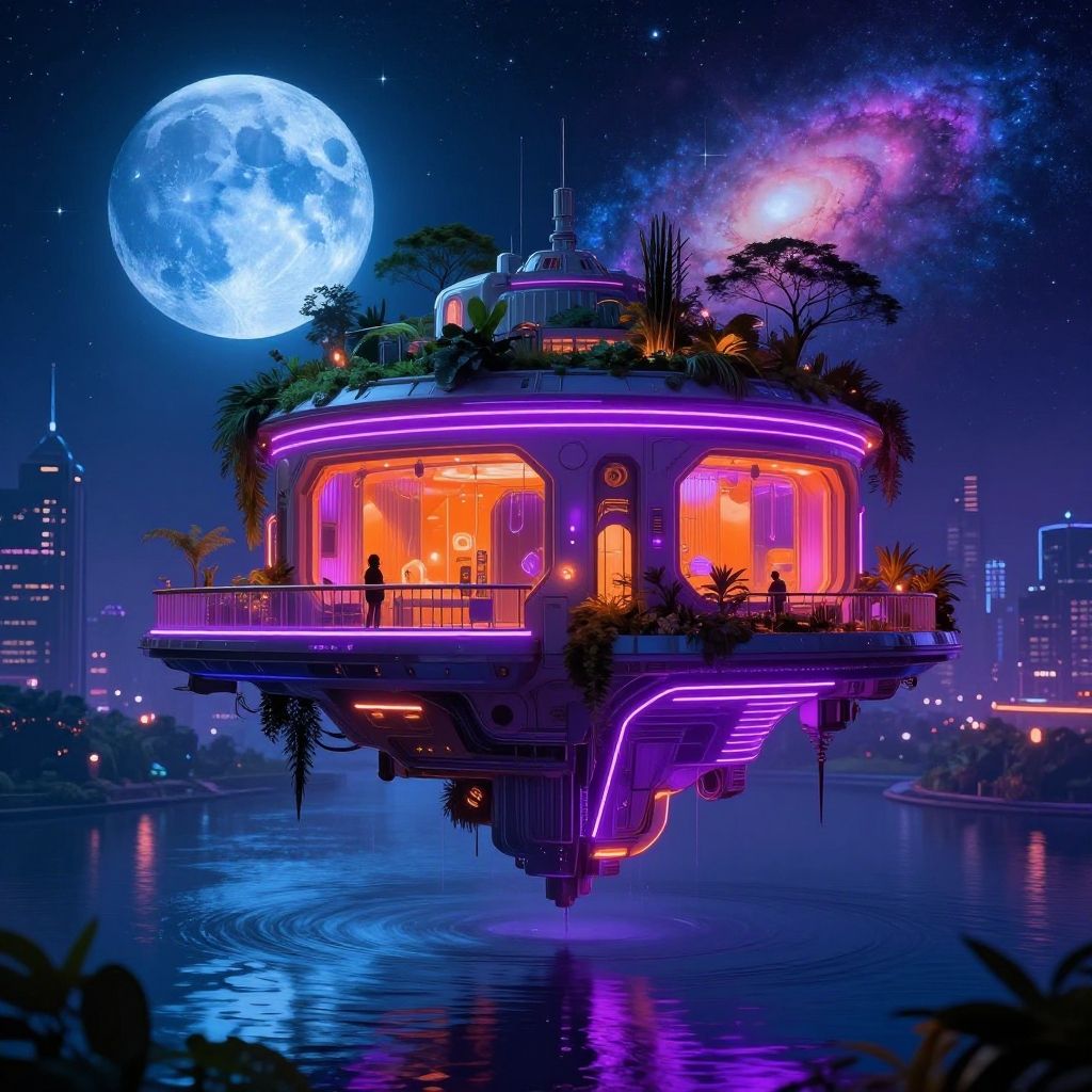Futuristic Galactic Café in Space