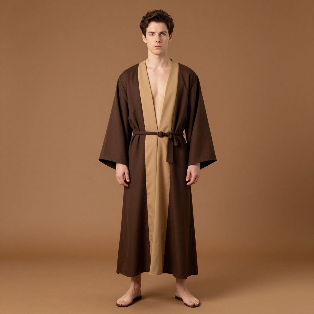Movie Character Simple Costume, man in a brown and tan robe standing in front of a brown background