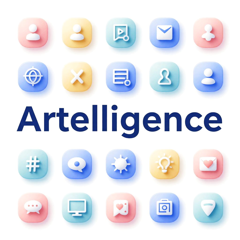 Ai icon generator from text visualization, seamless blend of typography and iconography, smooth transitions from letters to symbols, pastel palette with soft shadow effects, elegant minimal UI design showcasing artificial intelligence in icon creation