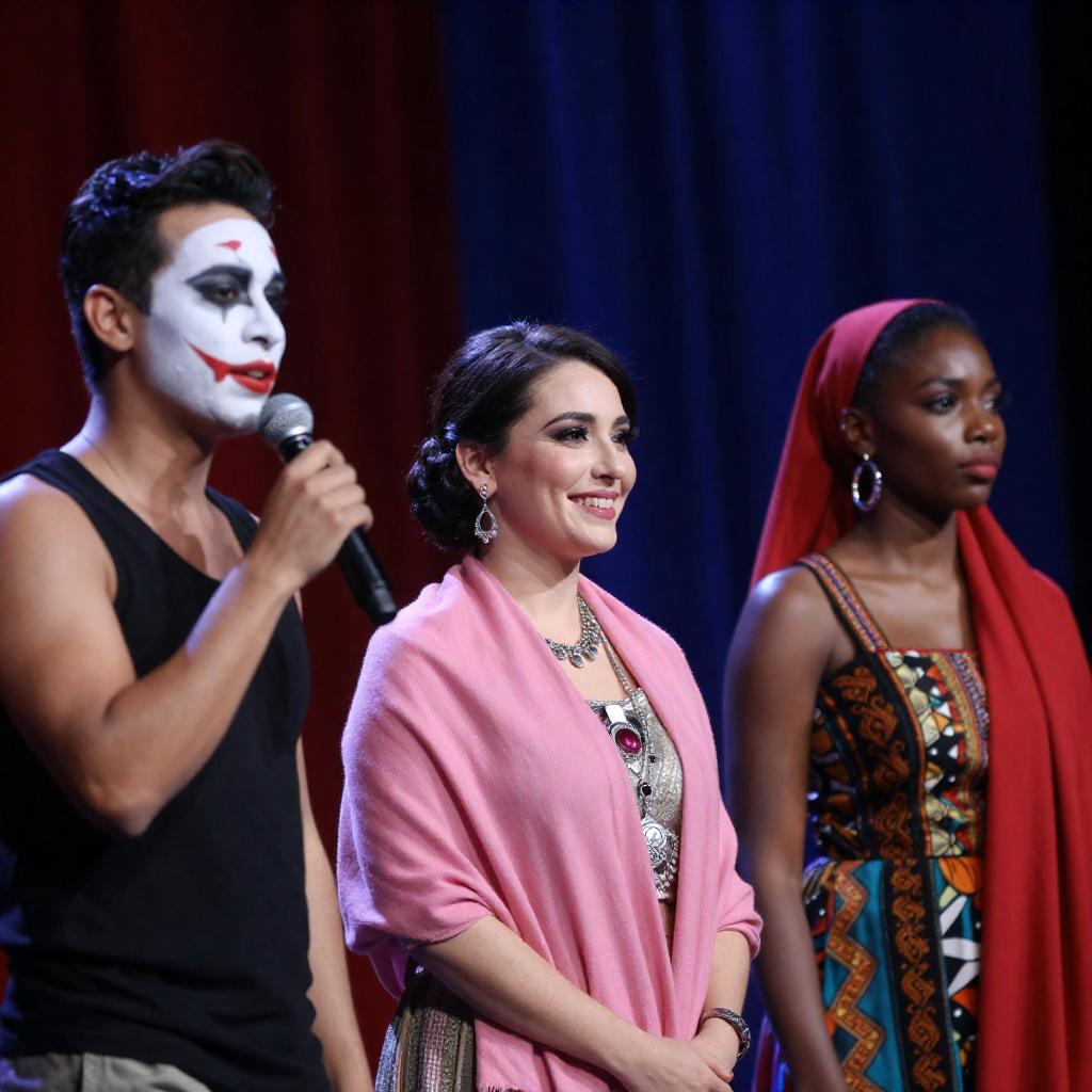 Three Performers on Dark Stage