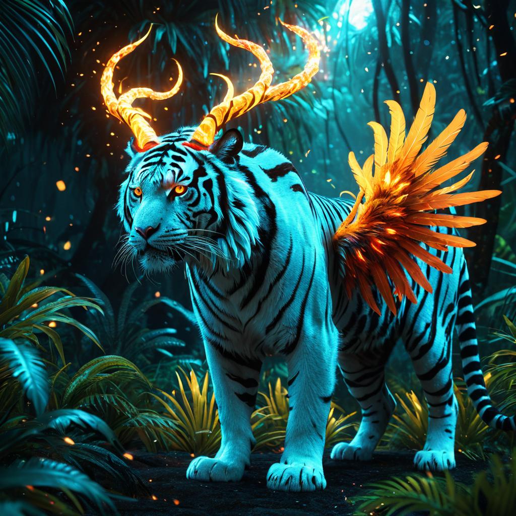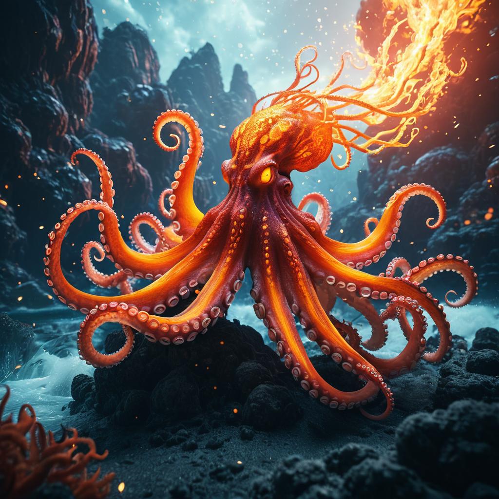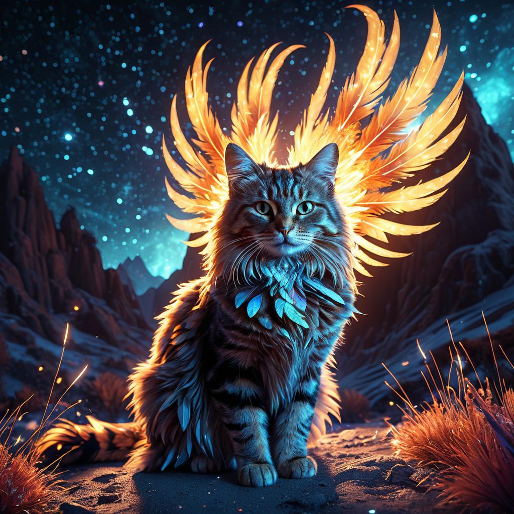 Radiant Phoenix-Fish Hybrid in Surreal Landscape
